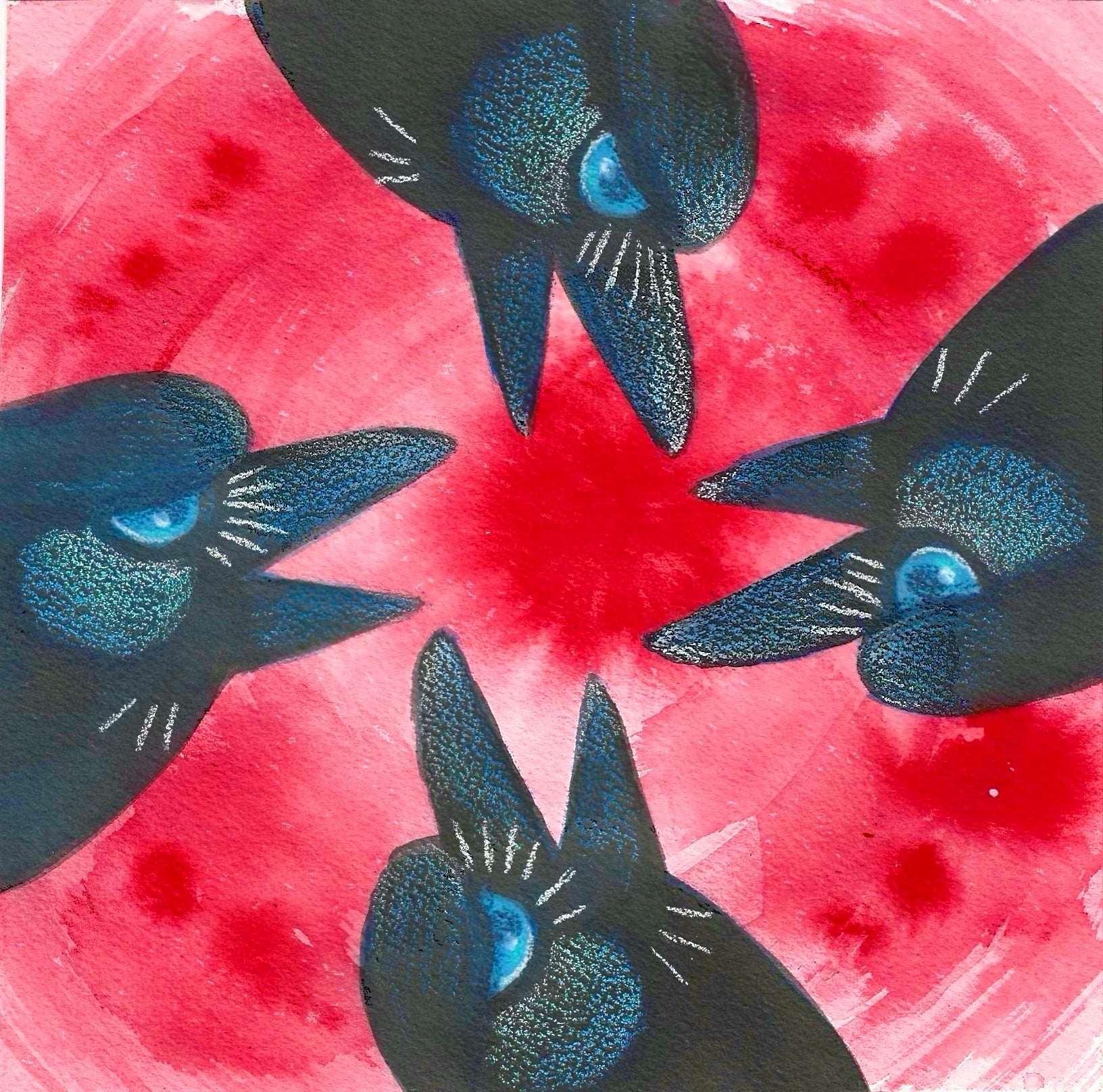 Acrylic ink on mixed media paper with colored pencils, unframed