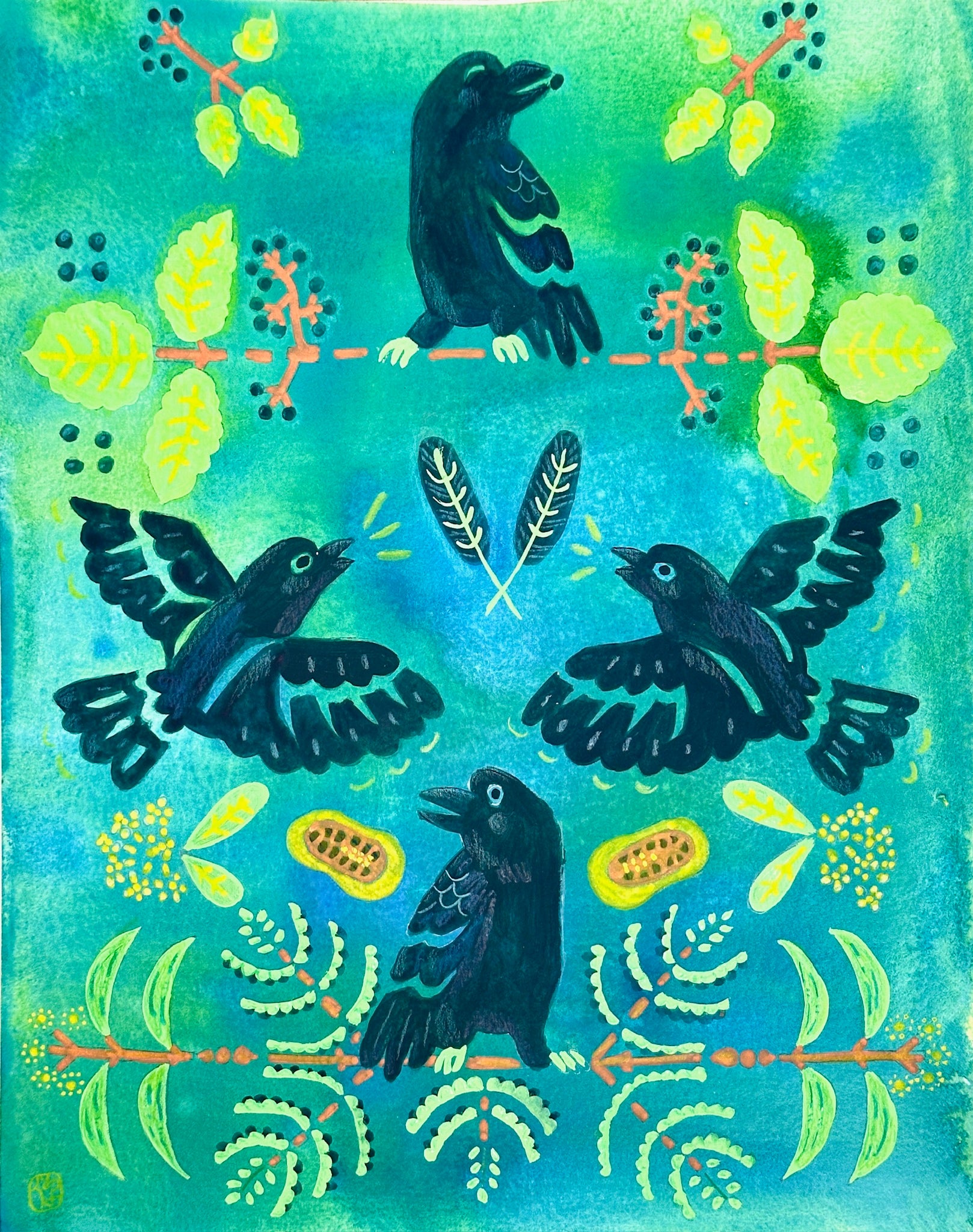 I wanted to feature their loud, prominent cry and favorite foods ʻōlapa and hōʻawa. Also added some koa (acacia) flourishes.