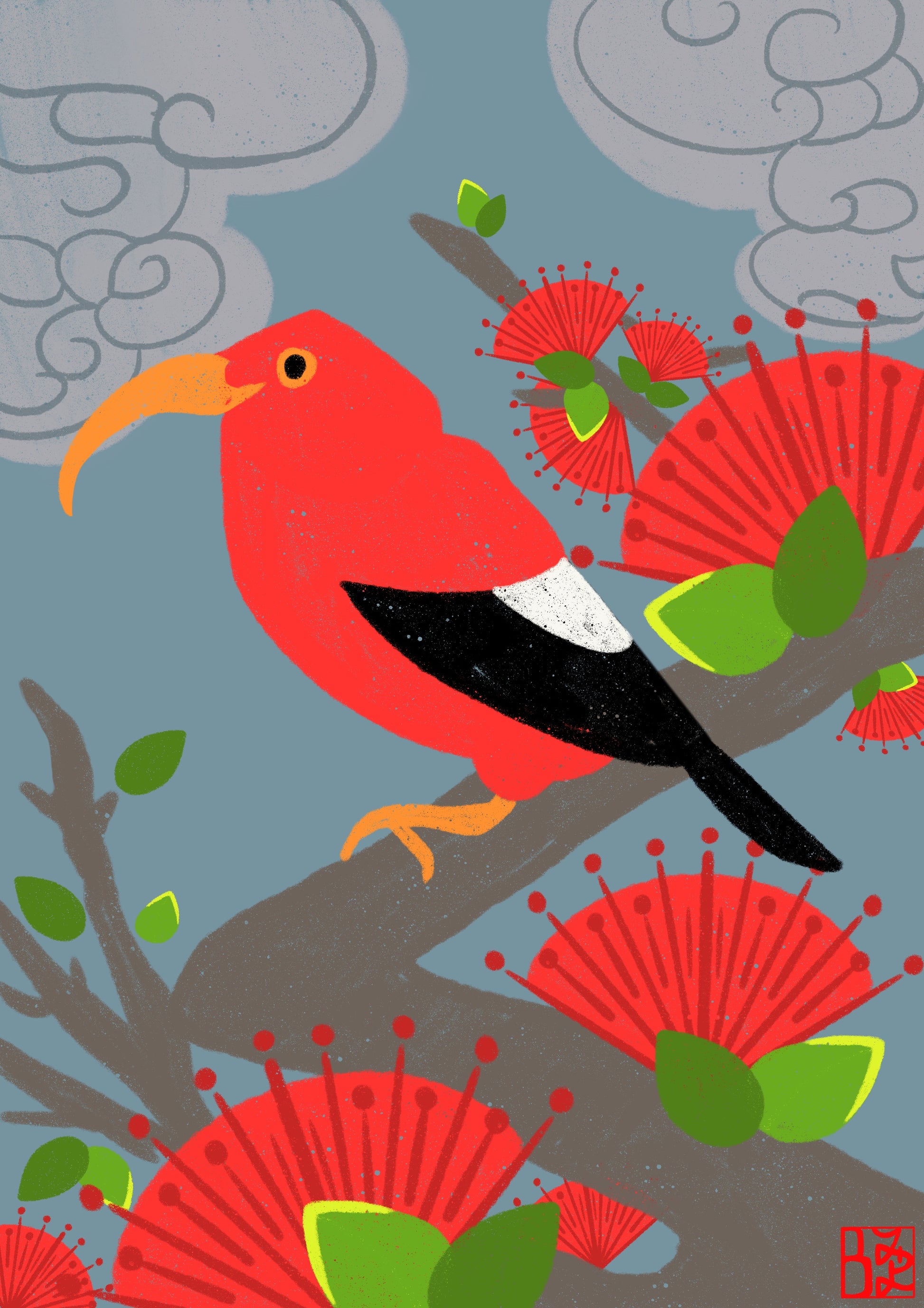ʻIʻiwi &ʻŌhiʻa Lehua Print