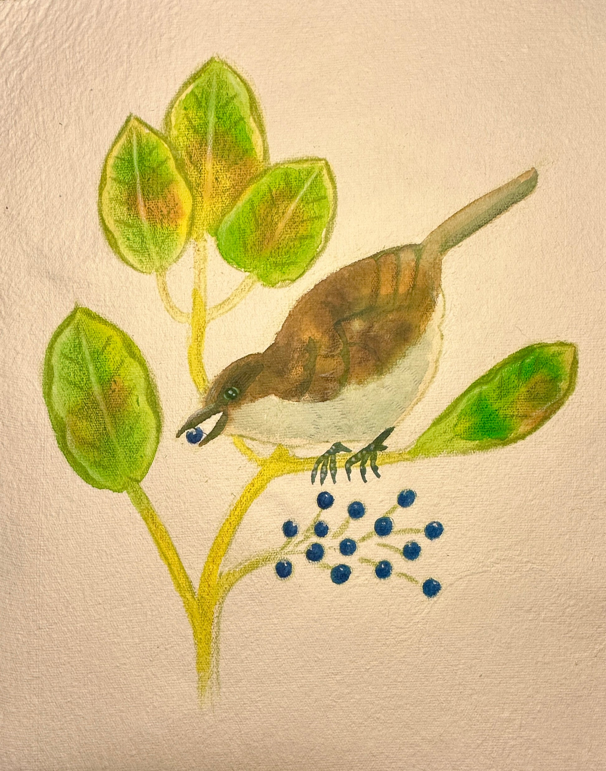Acrylic ink on mixed media paper with colored pencils, unframed