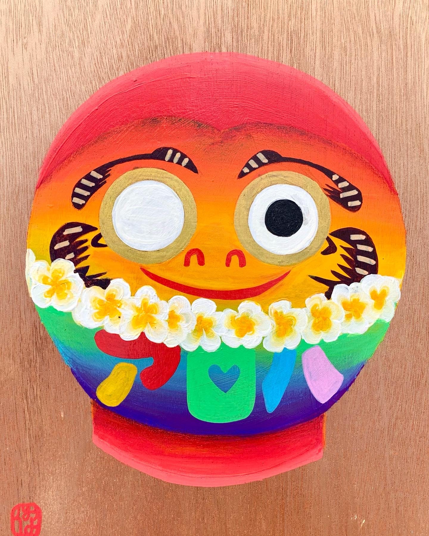 Daruma 達磨 are originally from Japan and are talisman of good luck. Purchased with blank eyes, the owner who has a goal or desire will color in one eye. Once achieved, they can color the other eye.