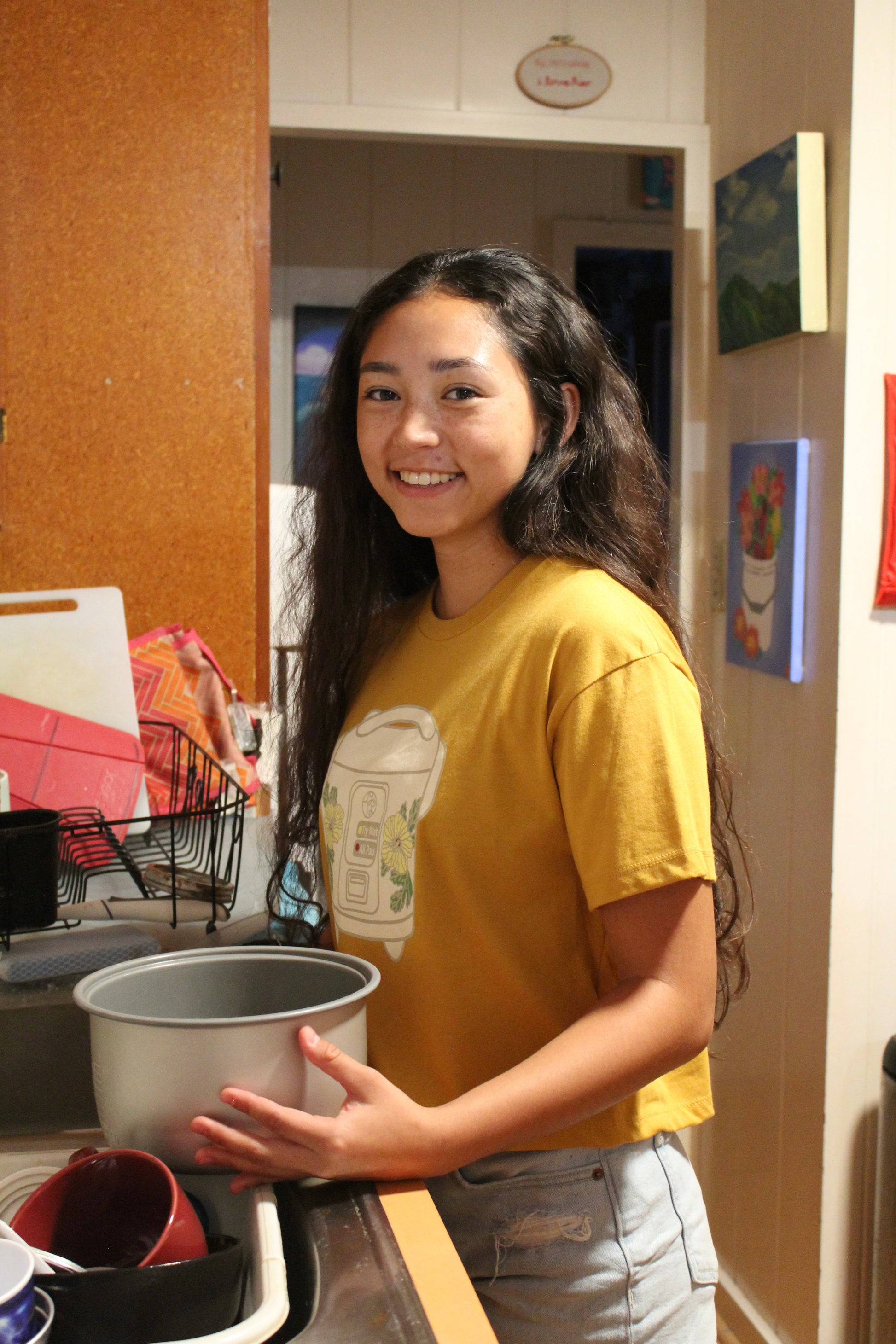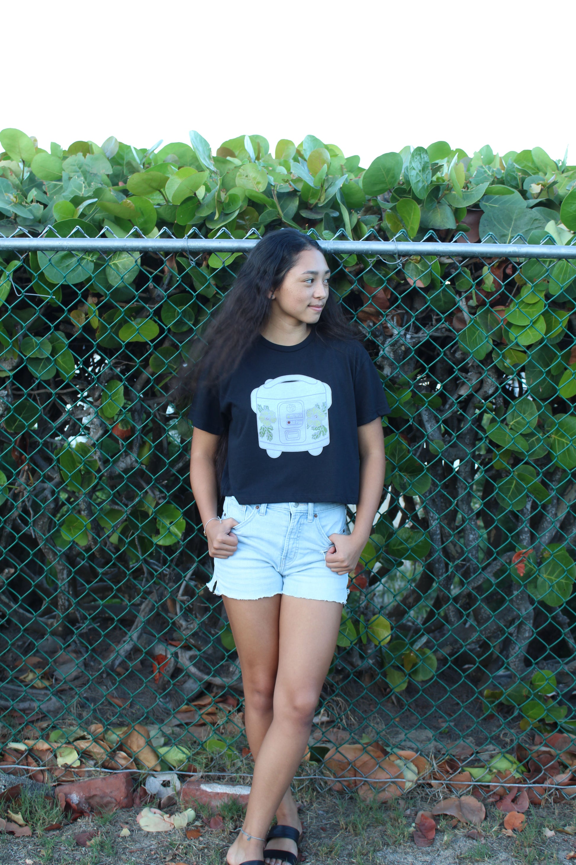 I’ve always wanted to draw a rice cooker! Inspired by the vintage Panasonic ones with beautiful botanical illustrations. I decided on a native pua that represents Hawaiʻi, maʻo hau hele or the yellow hibiscus, our state flower. Blending two cultures together is a consistent theme in my art, hence the simple title of “Hapa Rice.”