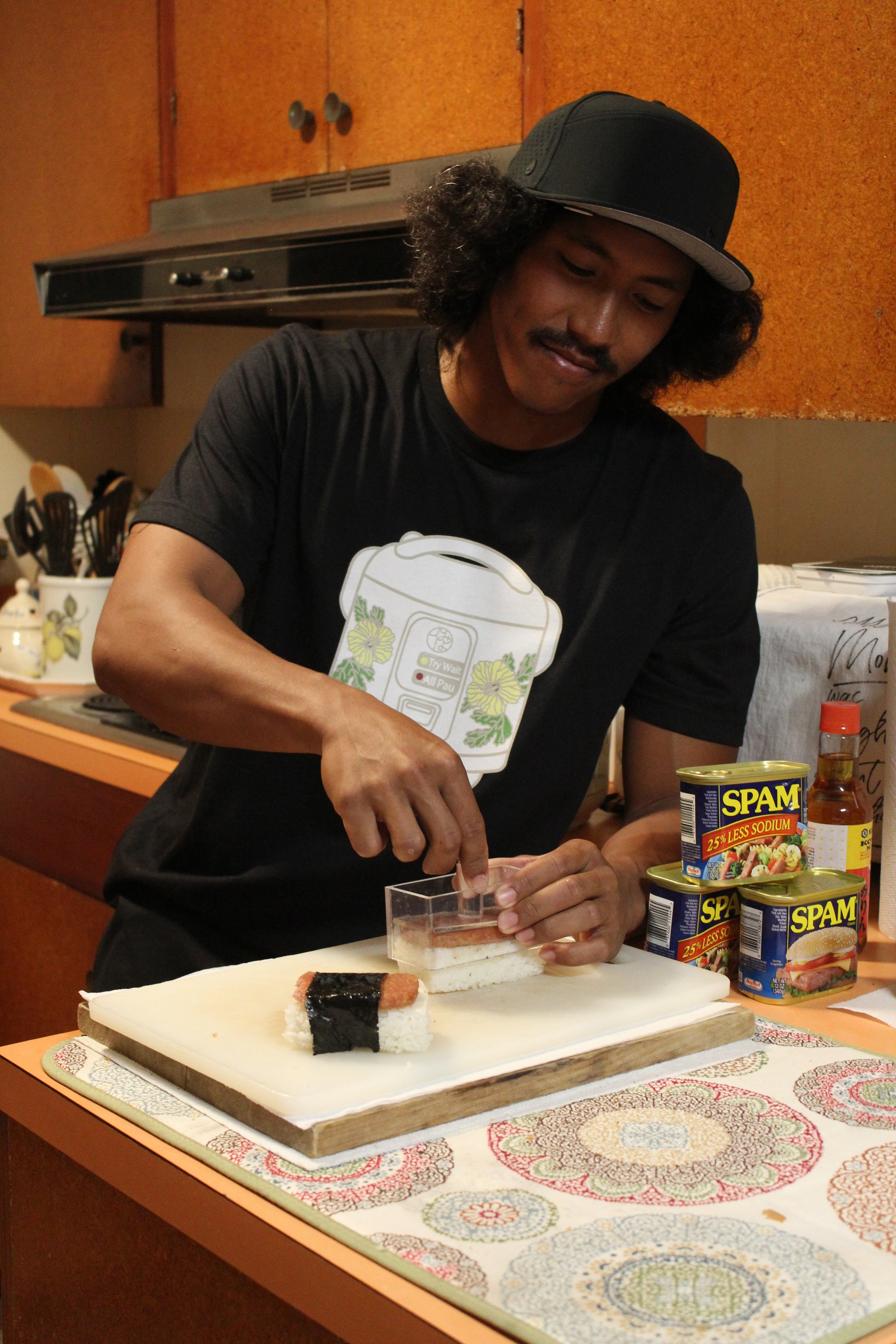 I’ve always wanted to draw a rice cooker! Inspired by the vintage Panasonic ones with beautiful botanical illustrations. I decided on a native pua that represents Hawaiʻi, maʻo hau hele or the yellow hibiscus, our state flower. Blending two cultures together is a consistent theme in my art, hence the simple title of “Hapa Rice.”