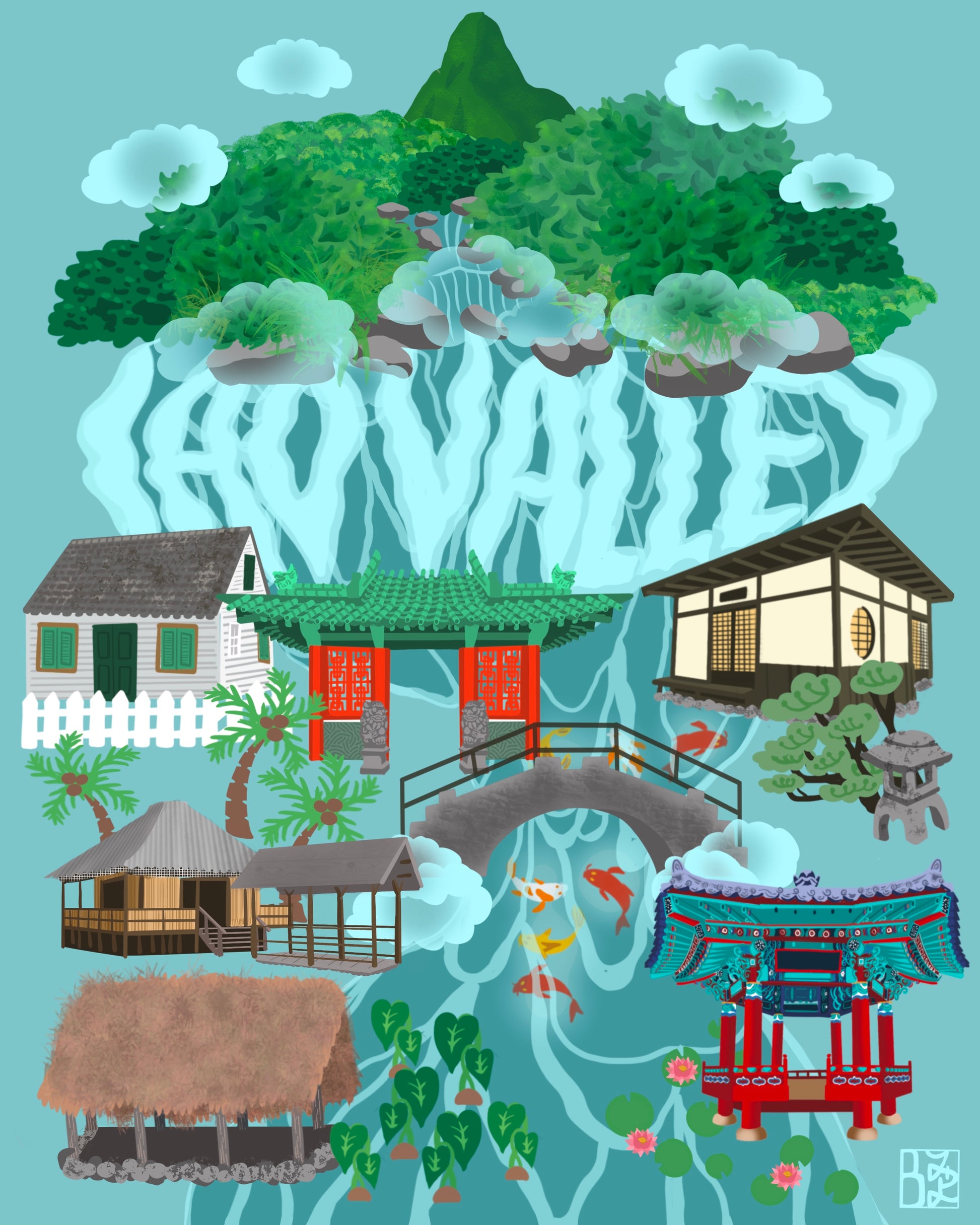 Depicting all gardens in Kepaniwai featuring Hawaii’s melting pot of ethnicities…Korea, Japan, Philippines, Hawaii, china, and Portugal are all representedBlank inside 4.25x 5.5” comes with envelope and plastic sleeve
