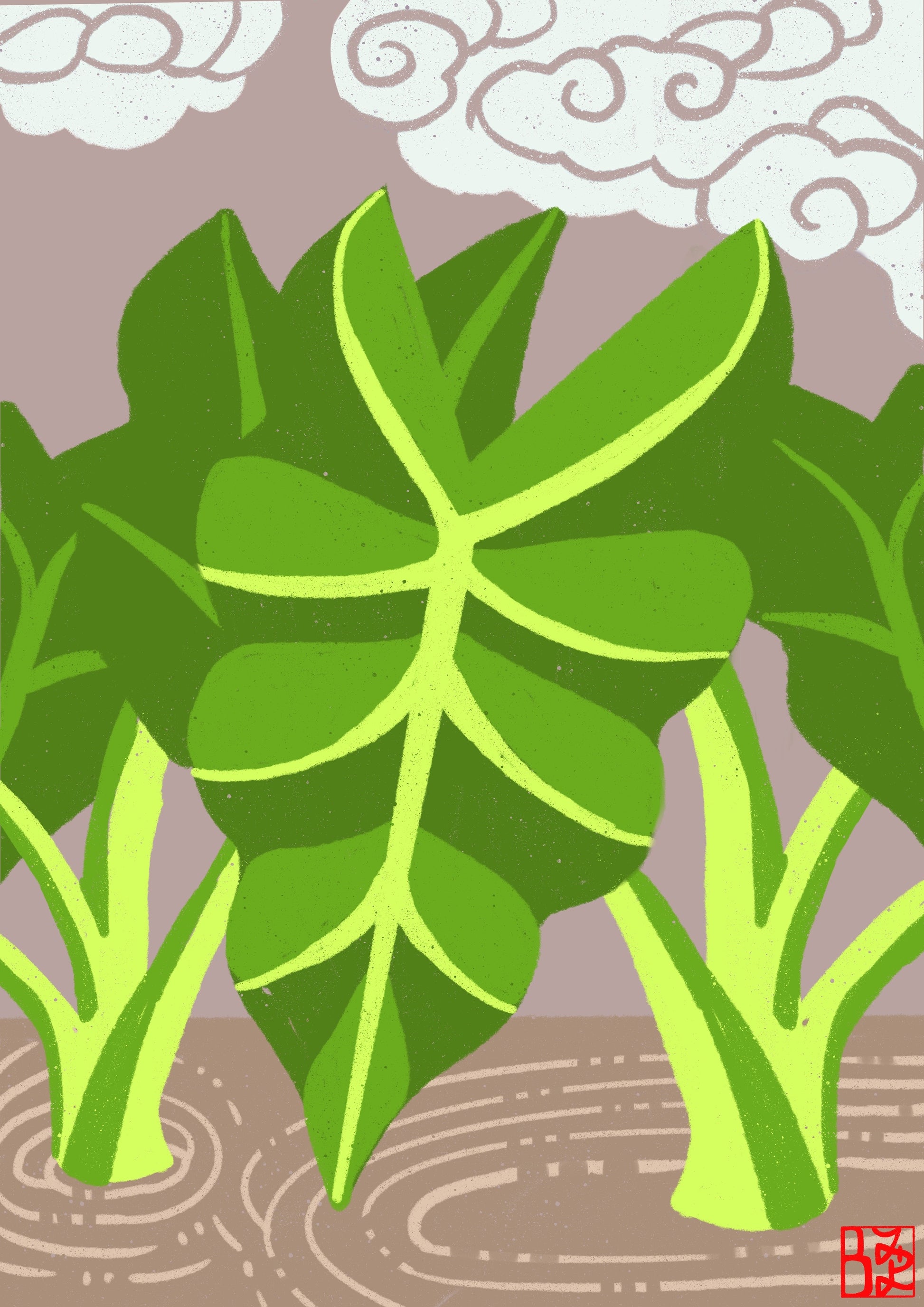 According to the Kumulipo, or ancient Hawaii’s chant of origin, kalo first rooted from a buried stillborn baby of the gods. Kalo is a symbol of life and ‘Ohana, or family, as it has provided nourishment to the Native Hawaiian people for generations.