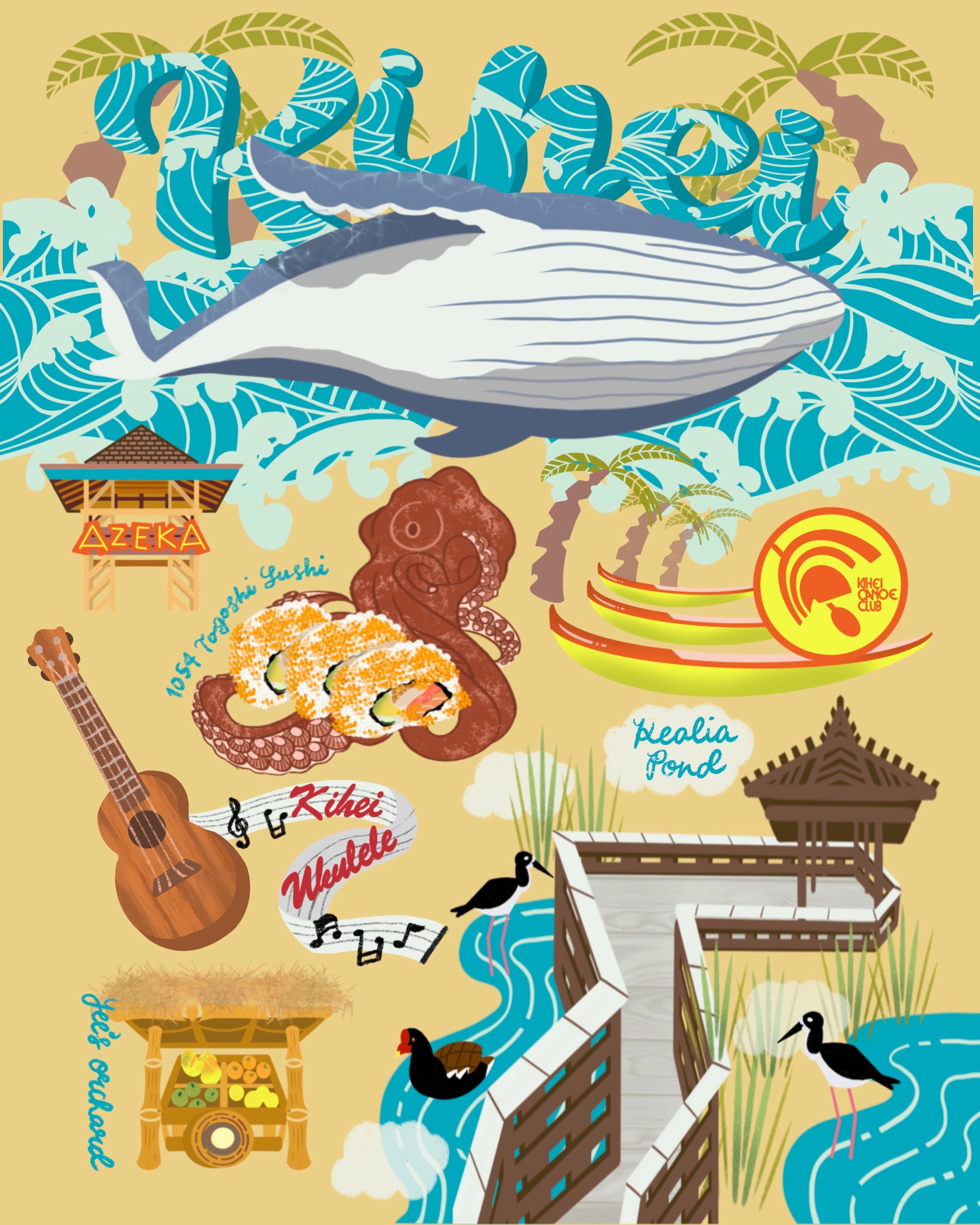 Kihei Ukulele is an amazing ukulele shop that also curates local artisan souvenirs, including my art! They are a must visit if you hope to take an ukulele home with you!