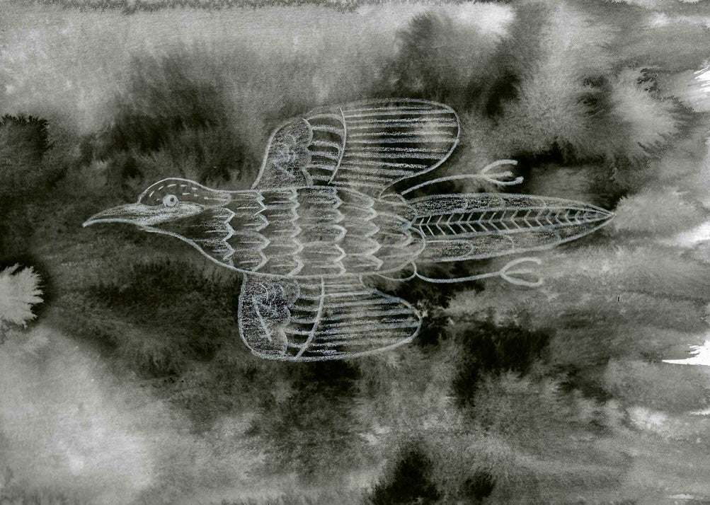 Acrylic ink on mixed media paper with colored pencils, unframed