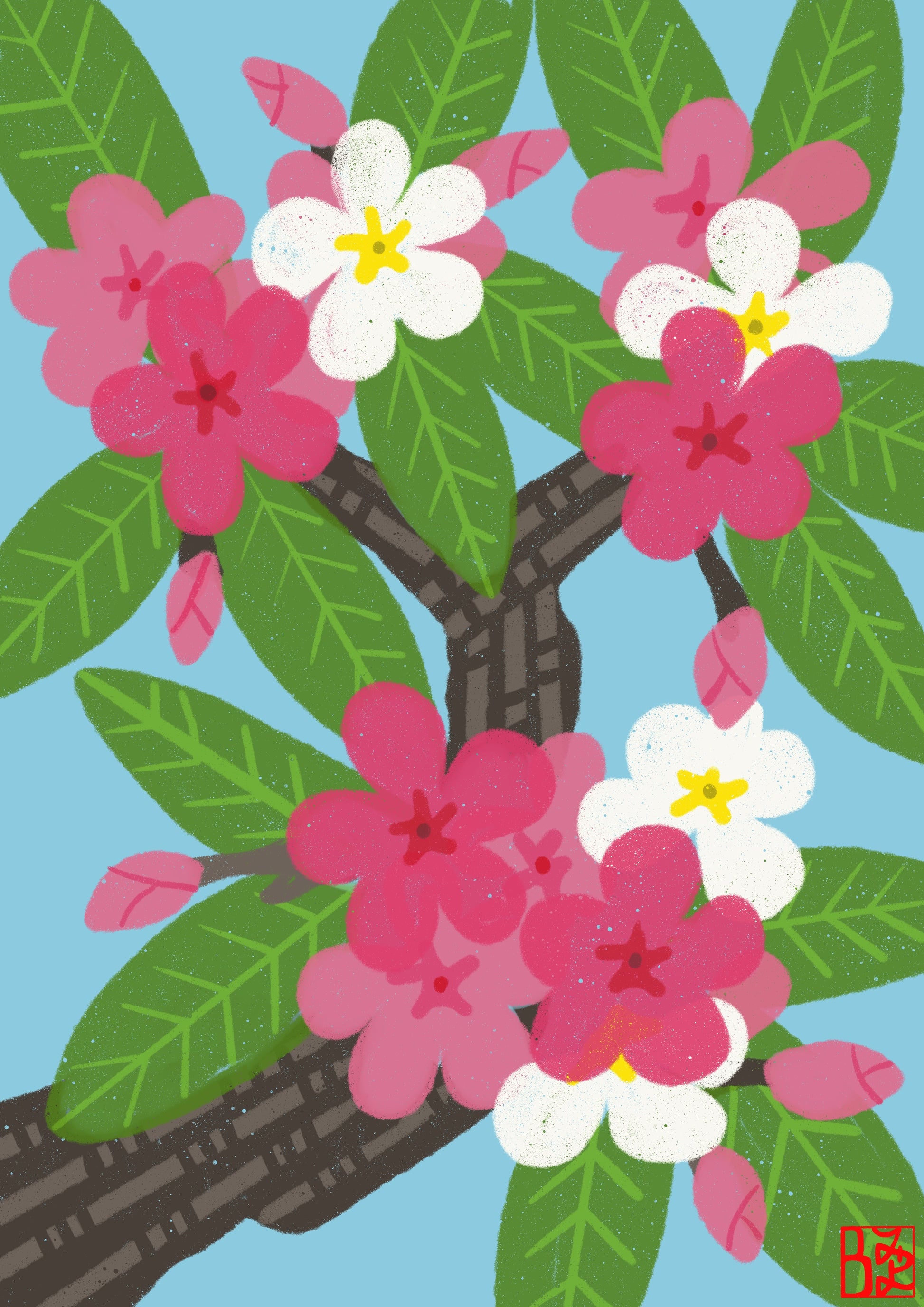 Plumeria aren't indigenous to Hawaii, but have become an integral part of local culture. Fragrant and available in a variety of species and colors, plumeria are extremely popular for leimaking. Flying into Hawaii, I always realized I've reached home...when a fragrant handstrung lei of plumeria is draped around my neck during an embrace from loved ones.