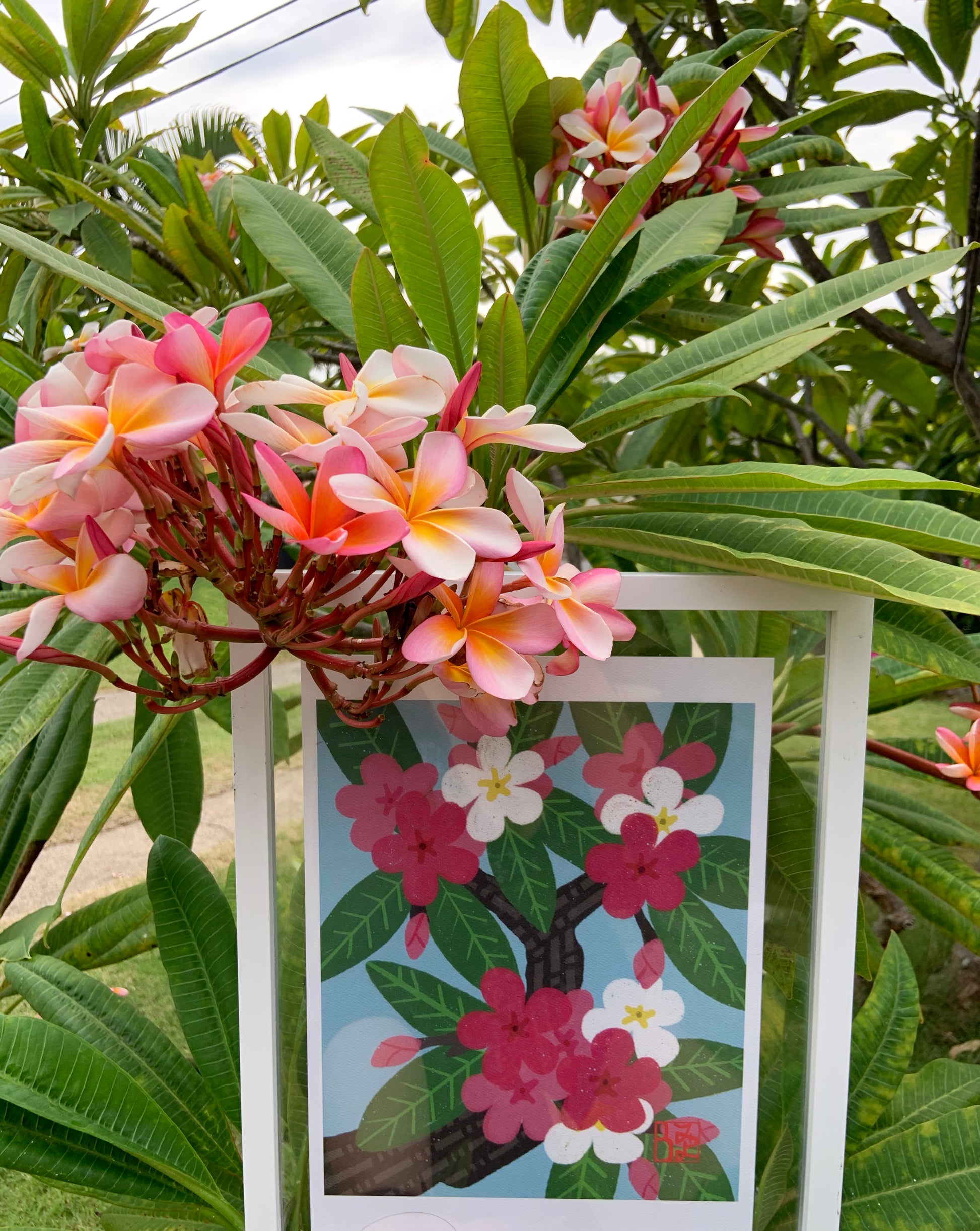 Plumeria aren't indigenous to Hawaii, but have become an integral part of local culture. Fragrant and available in a variety of species and colors, plumeria are extremely popular for leimaking. Flying into Hawaii, I always realized I've reached home...when a fragrant handstrung lei of plumeria is draped around my neck during an embrace from loved ones.