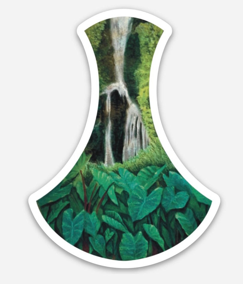 Featuring lo'i nearby a secret waterfall in Maui in the shape of a poi pounder.