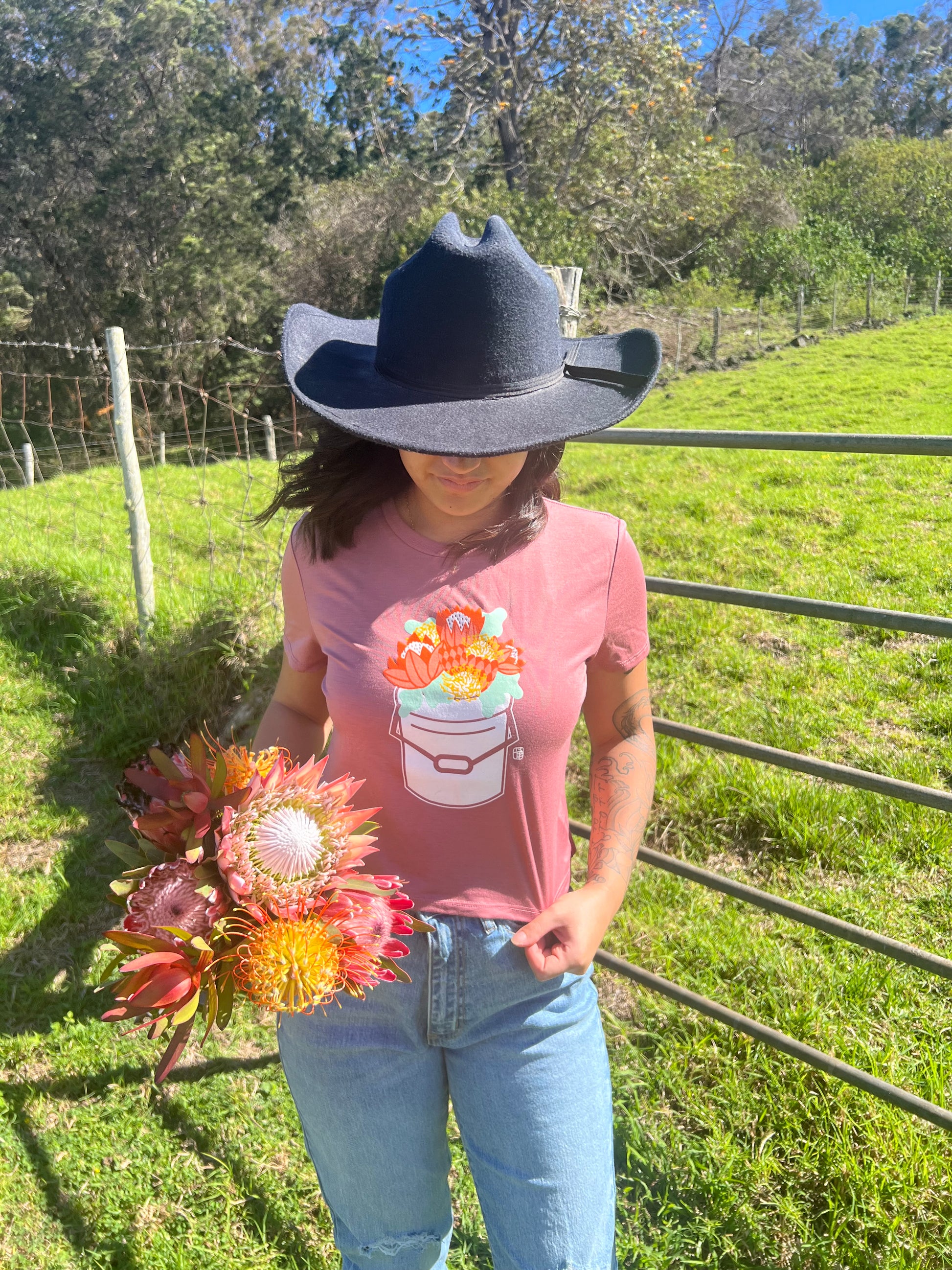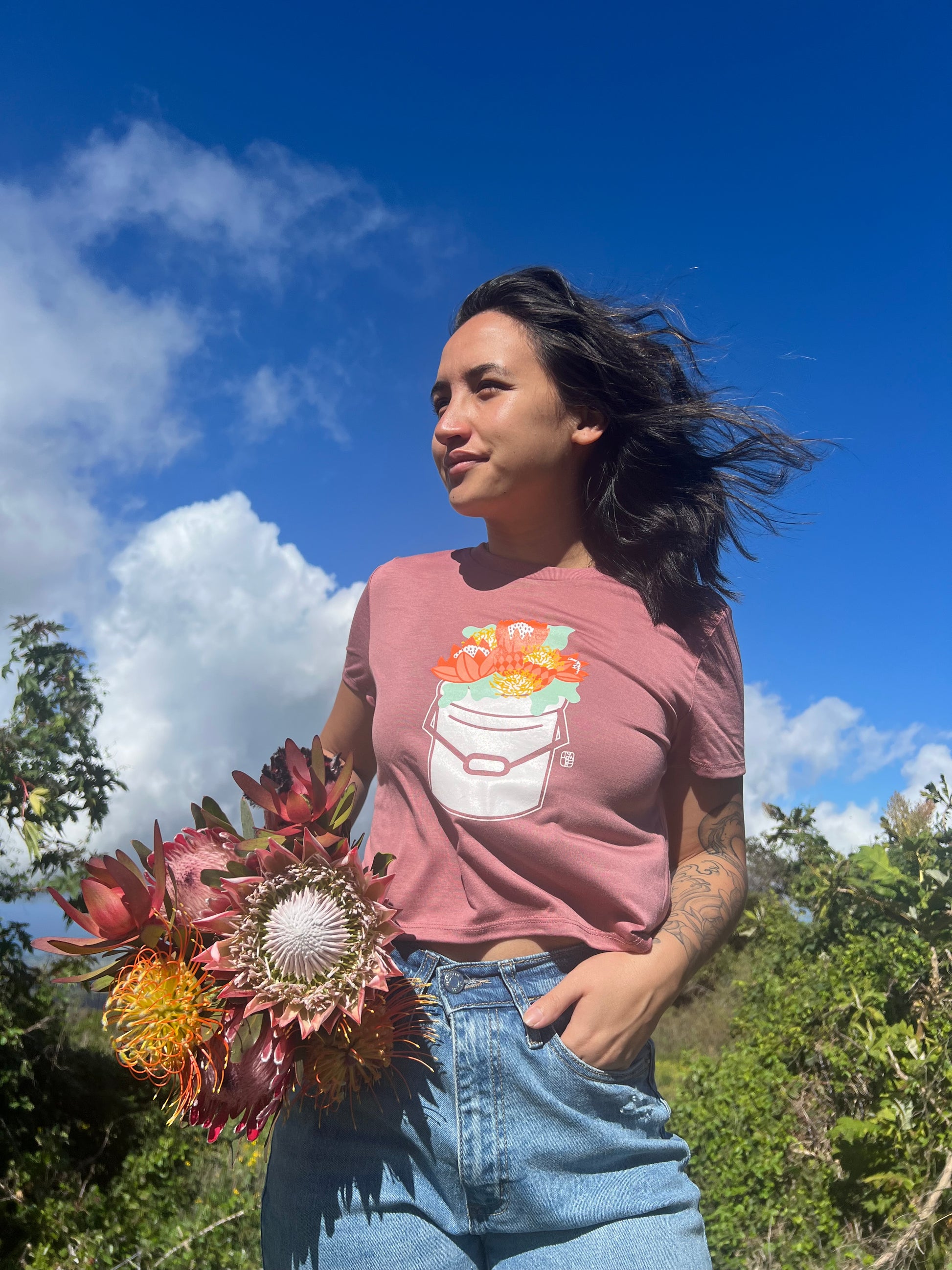 Pops of cheerful colors, shimmering leaves, and sculpted petals. Protea arrangements stand out against the overcast clouds on a chilly Kula day. These protea buckets are a tribute to my love for Upcountry Maui. On a lucky day, you can find some bouquets for sale in a typical neighborhood. Please abide by the honor system and leave da money in da mailbox!