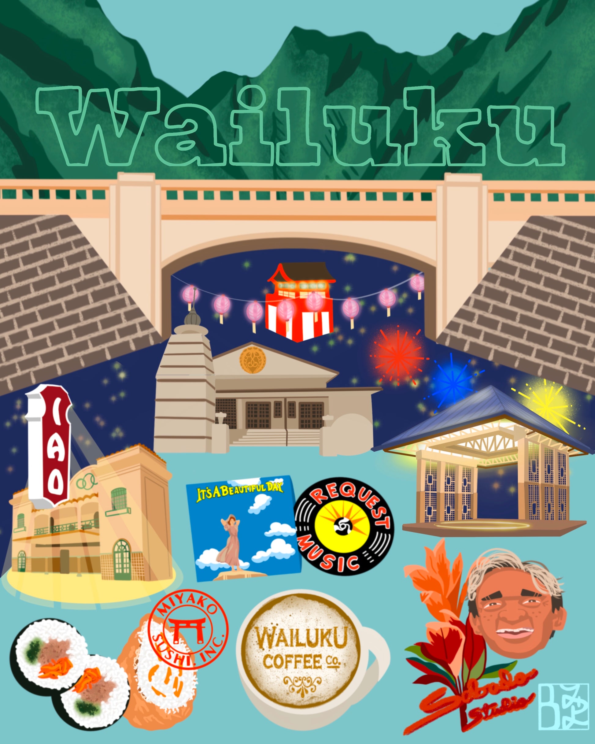 Wailuku - a small city in central Maui. Here is an illustration of this beloved spot I never grow tired of…the spectacular mountain view while driving on the humble overpass…4.25 x 5.25” comes with envelope and plastic sleeve